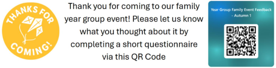 We had an incredible turn out for the maths-flavoured Family Engagement events this week! Thank you for coming into school to be part of your child’s learning. Please do take a moment to let me know what you enjoyed, and any ideas you have to make these events even better in the future. The QR code below will take you straight to the feedback form, and I really value your responses.