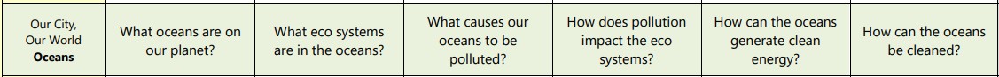 The CAW Our City, Our World learning helps the children understand the impact of climate change, encourages them to spend more time in the natural world, and build their sense of agency so that they know they are important and that they have the power a difference. This half term, our learning is related to Oceans. You can see each week’s learning question below: