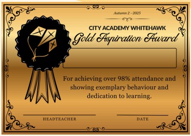 We’re excited to be awarding the brand-new City Academy Whitehawk Aspiration Awards very soon! These awards are designed to encourage children to have great attendance and to continue showing exceptional behaviour. We will be awarding the certificates every half term, so if your child didn’t earn one from Autumn 2, they will have the chance to earn one based on their attendance and behaviour during the current term.